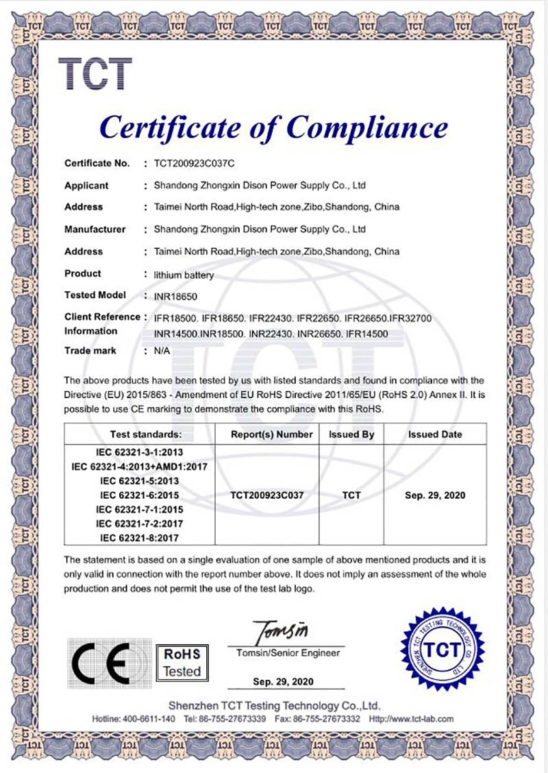 鋰離子電池廠家山東中信迪生電源有限公司(DISON)